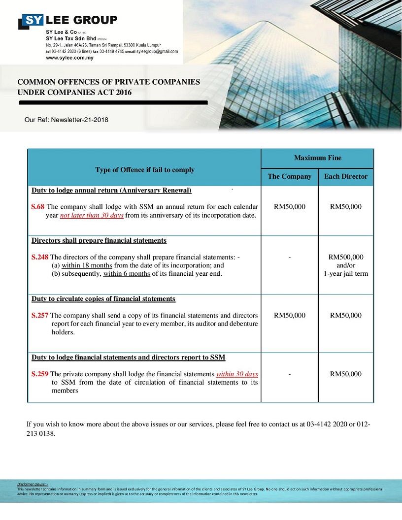 Newsletter-21-2018- Common offence under Companies Act 2016