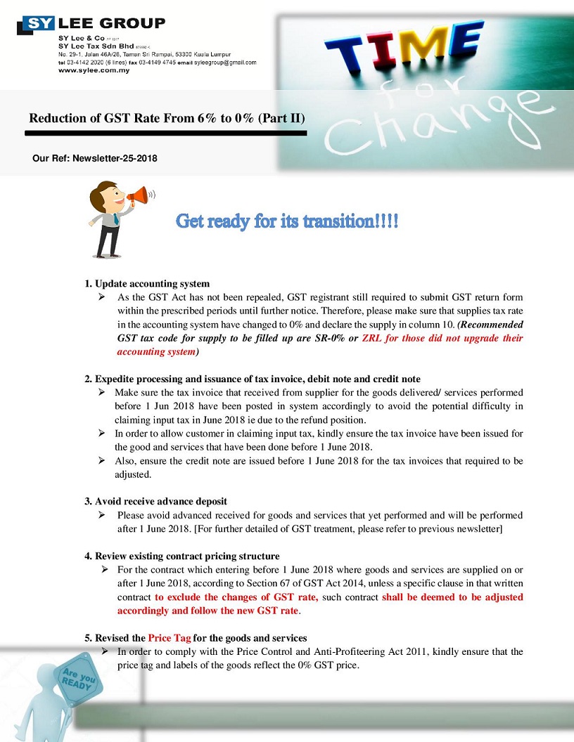 Newsletter-25-2018 - Reduction GST Tax Rate to 0% Part II