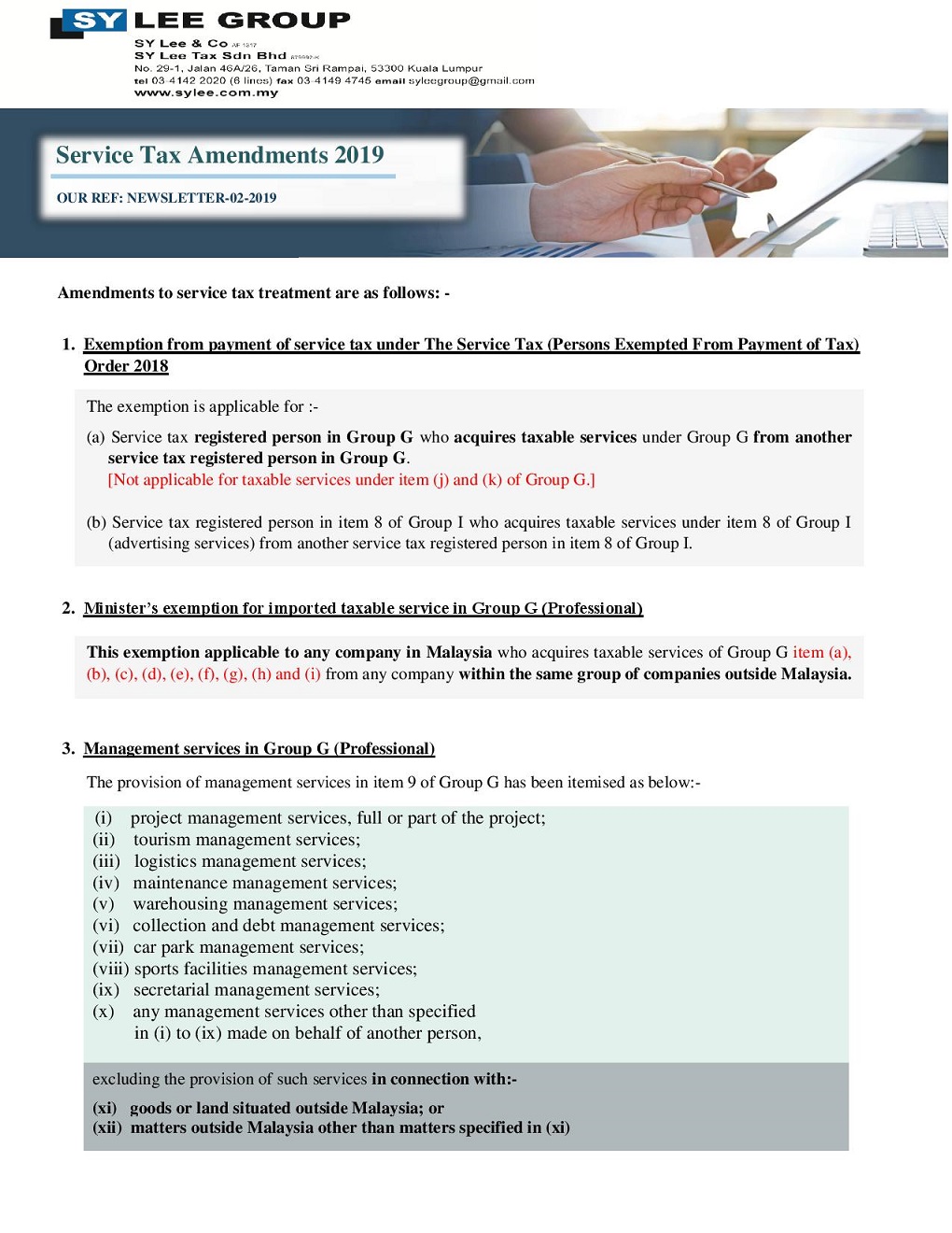 Newsletter-2-2019-Amendment on Service Tax 2019