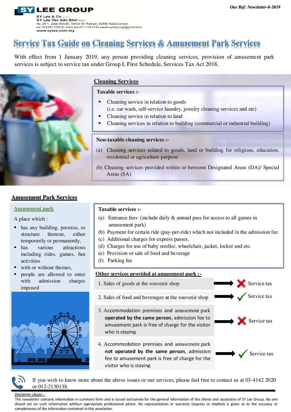 Newsletter-8-2019-Service Tax guide on Cleaning and amusement park services