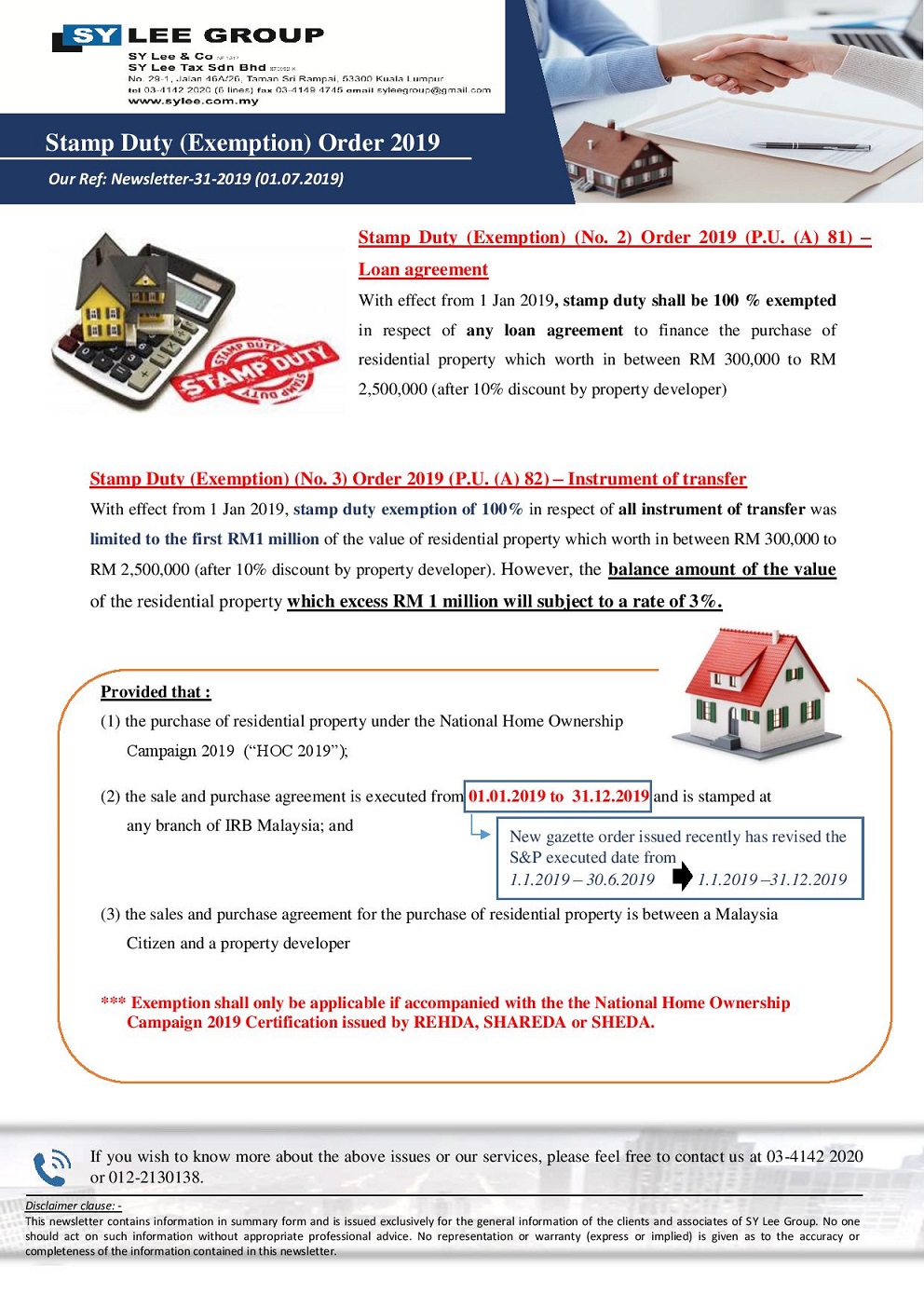 Newsletter-31-2019-Stamp Duty (Exemption) [No.2 & 3]