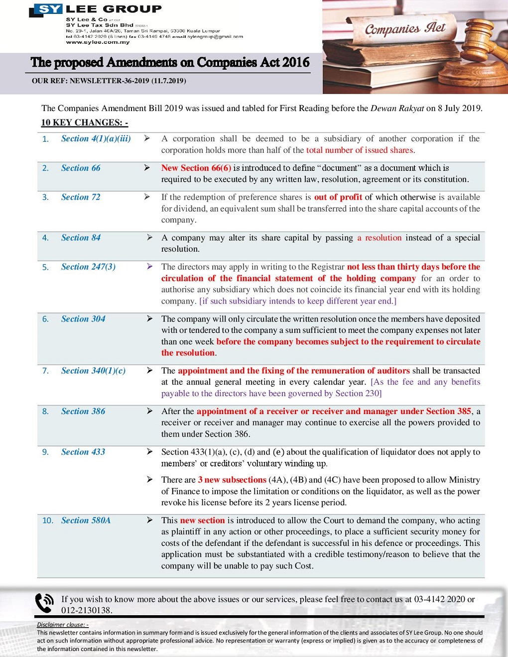 Newsletter-36-2019-The Proposed Amendments on Companies Act 2016