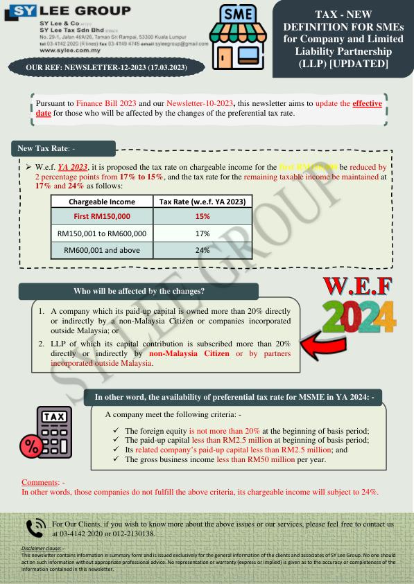 Newsletter-12-2023 - New Definition of SME for Tax Purpose UPDATED