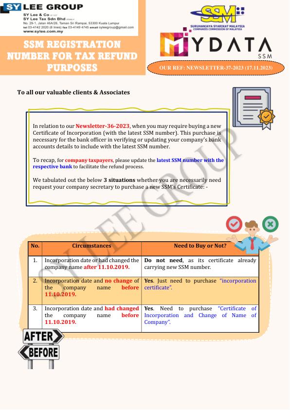 Newsletter-37-2023 - SSM Registration Number for Tax Refund Purposes